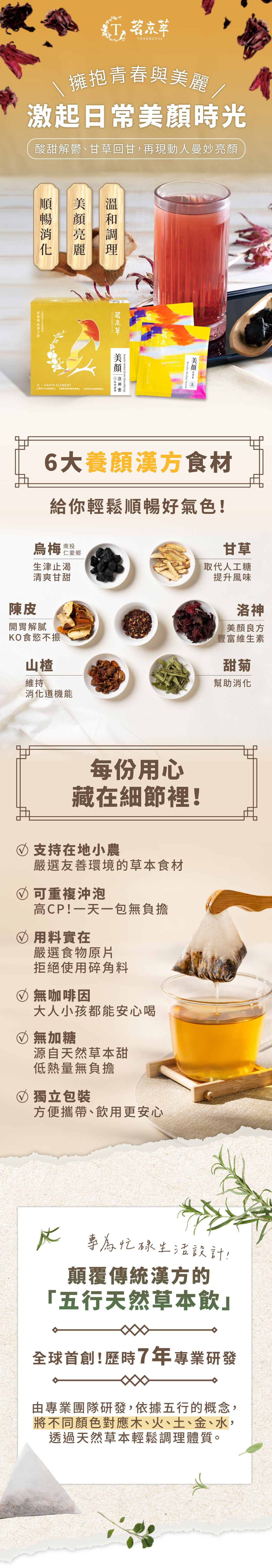 洛神、山楂、烏梅的微酸味解鬱,配合陳皮甘草,酸甜無澀好入喉。