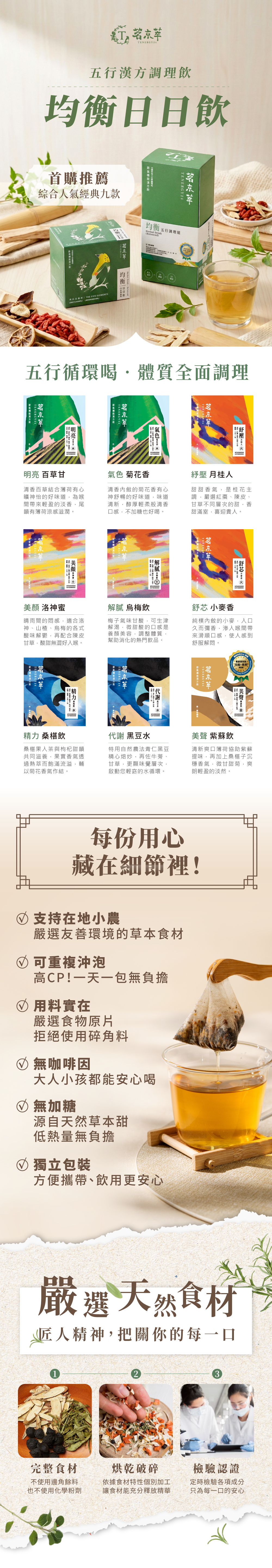| 代謝黑豆水 | 青仁黑豆、牛蒡、甘草(14克/入) |
