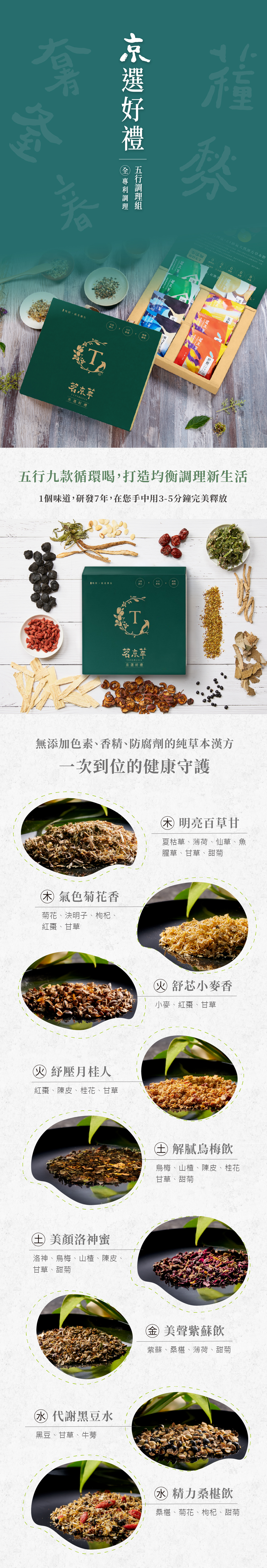 禮盒內含金/木/水/火/土/5行機能養生茶