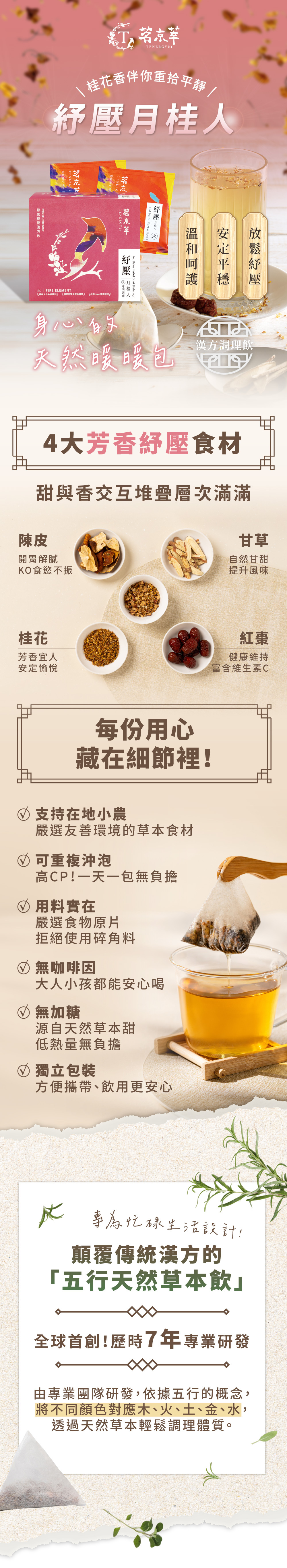 桂花為主調,輔佐紅棗、陳皮、甘草帶出不同層次的甘甜