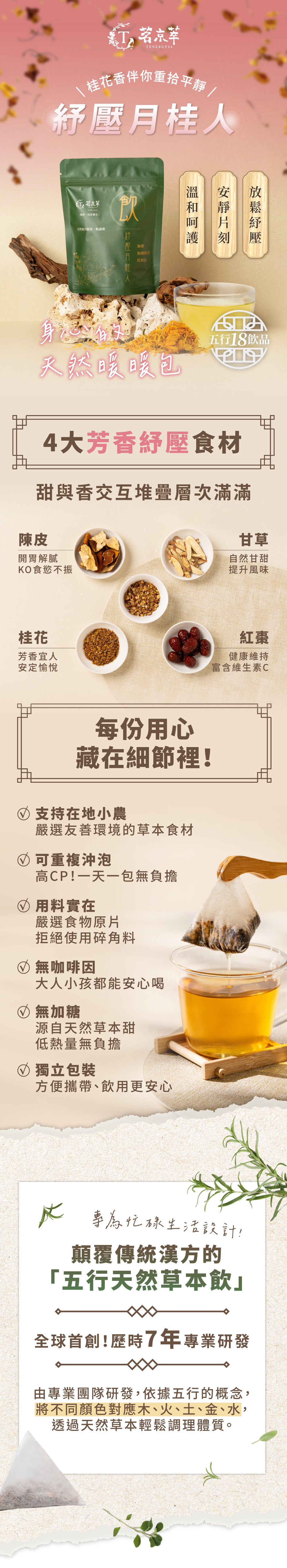 桂花為主調,輔佐紅棗、陳皮、甘草帶出不同層次的甘甜
