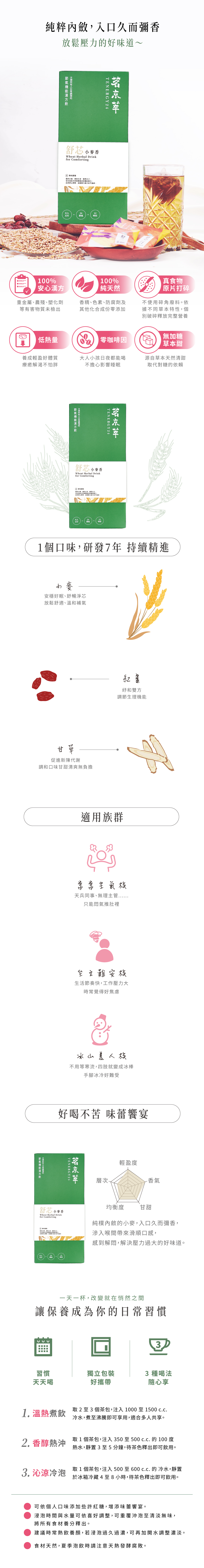 | 舒芯小麥香 | 炒小麥、紅棗、甘草(9克/入) |